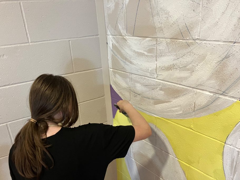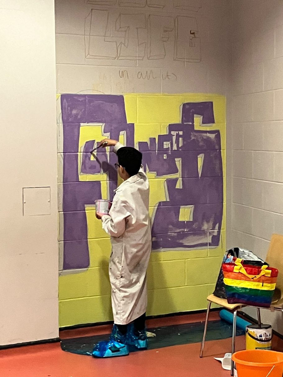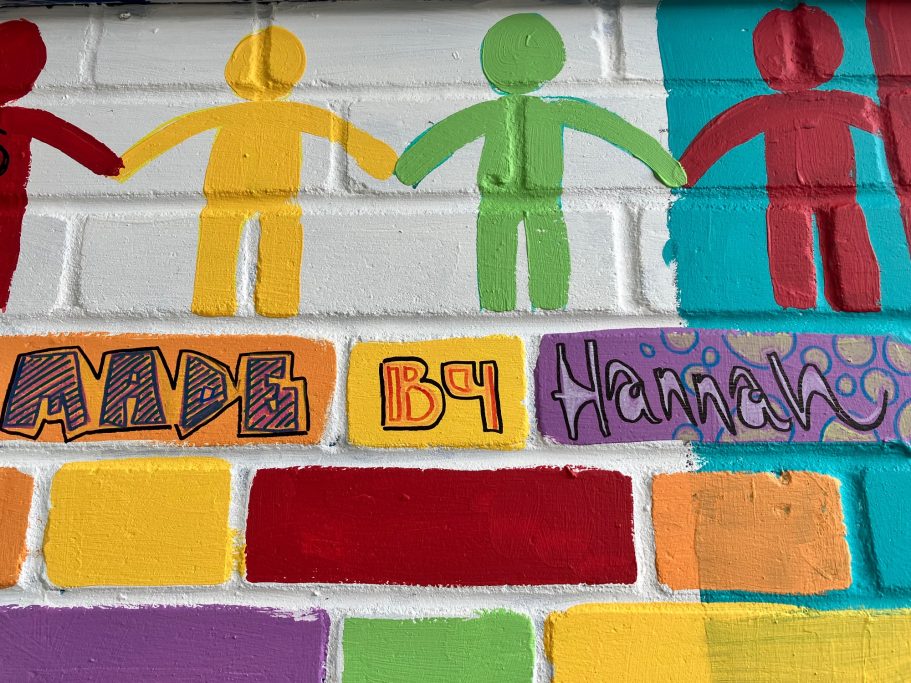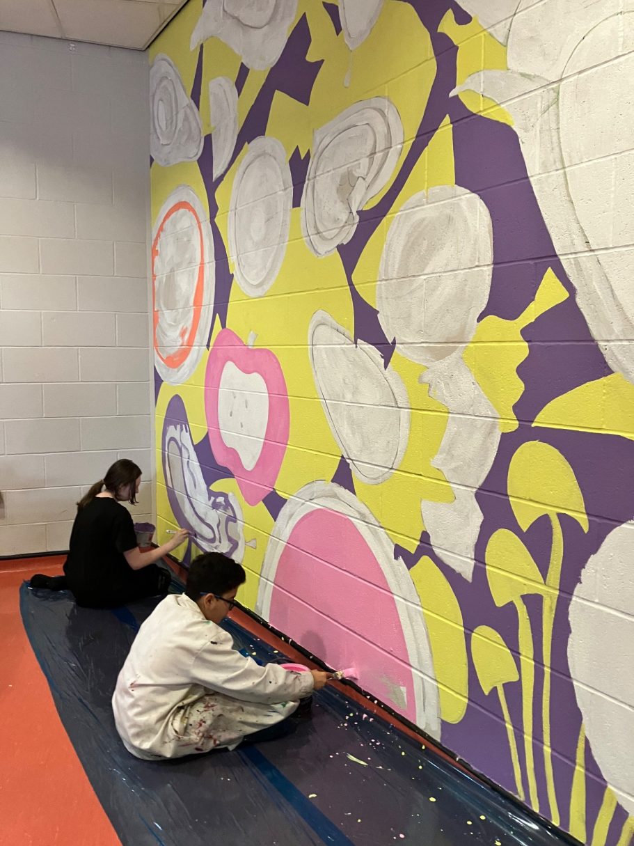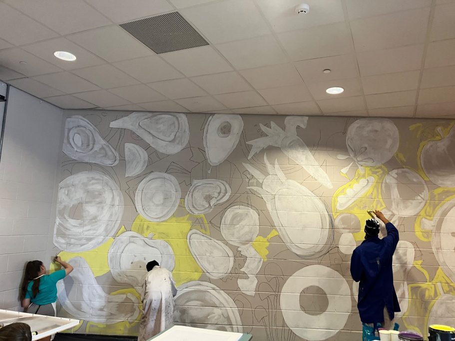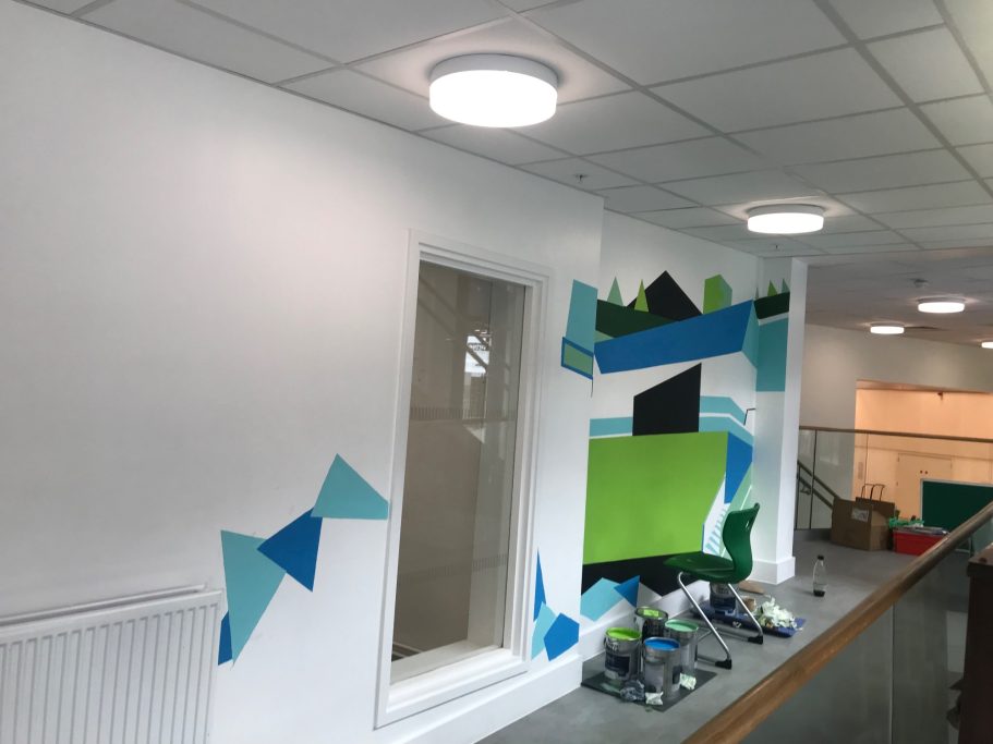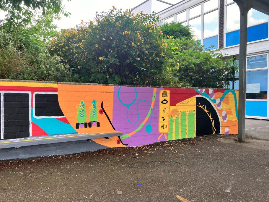A wide selection of pupils from different year groups helped paint the mural, some Art GCSE Students, some Art Scholar students, some staff amd siome students that just really wanted to help out for wellbeing and enjoyment.