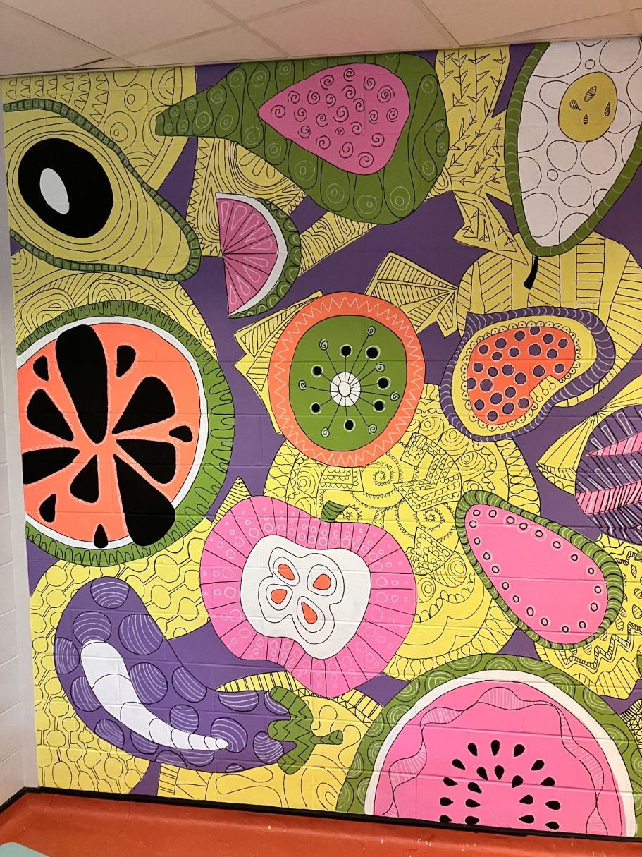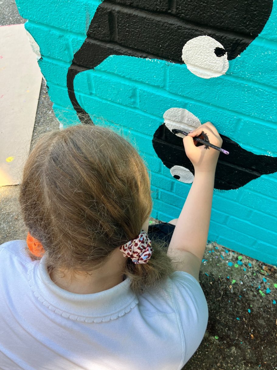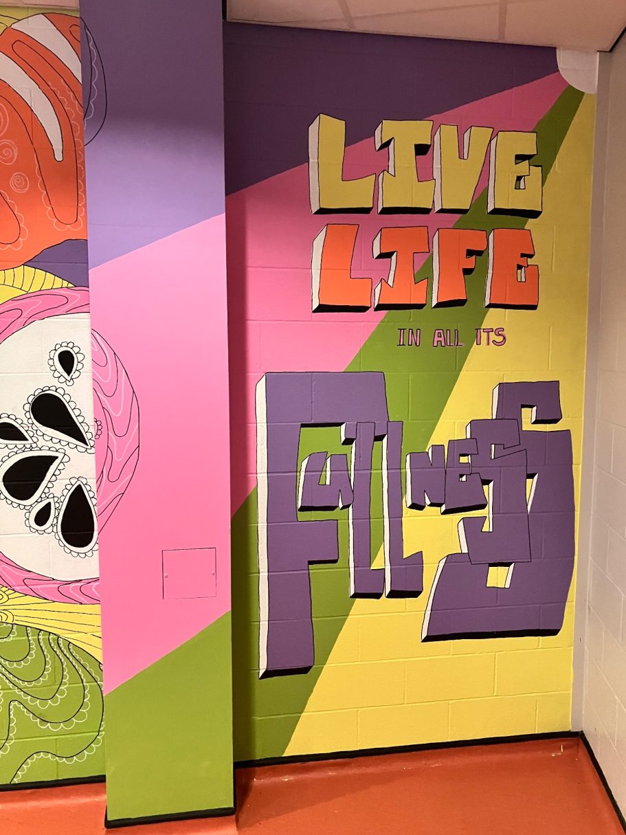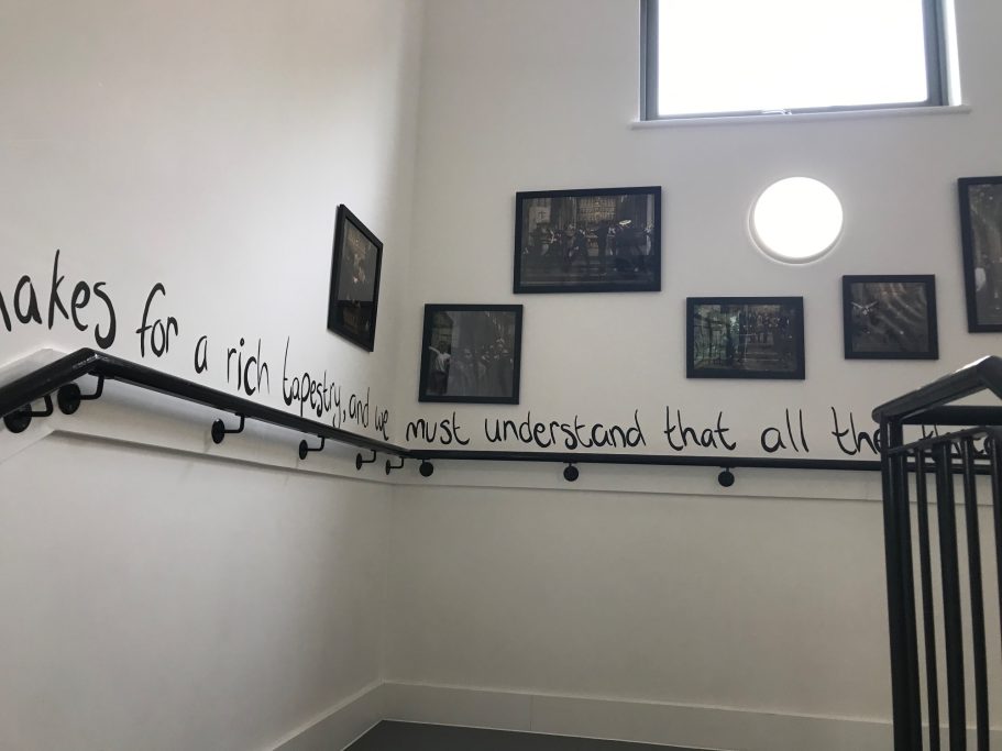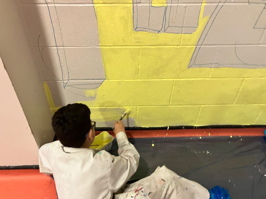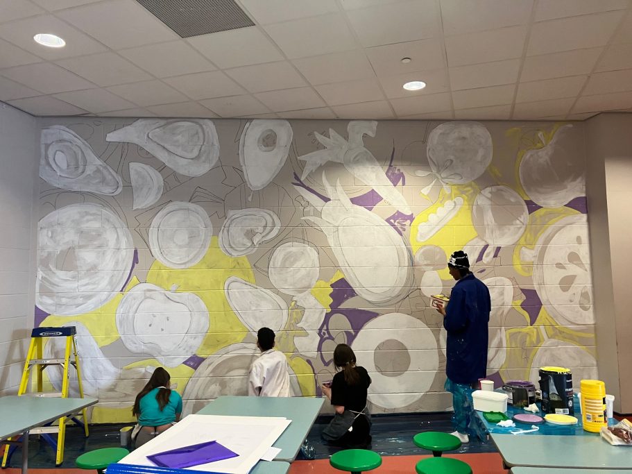 A wide selection of pupils from different year groups helped paint the mural, some Art GCSE Students, some Art Scholar students, some staff amd siome students that just really wanted to help out for wellbeing and enjoyment.
