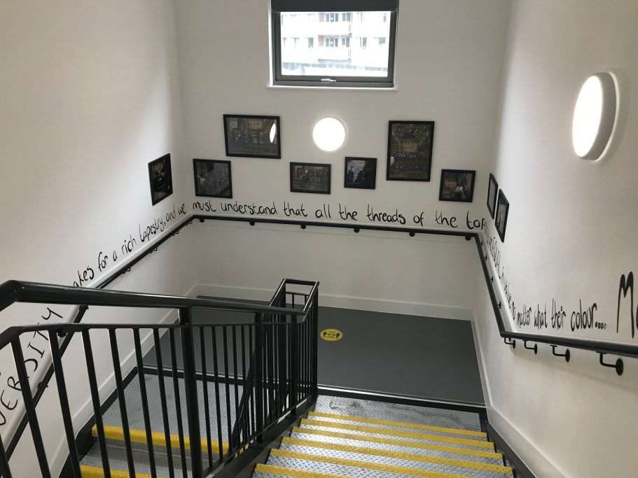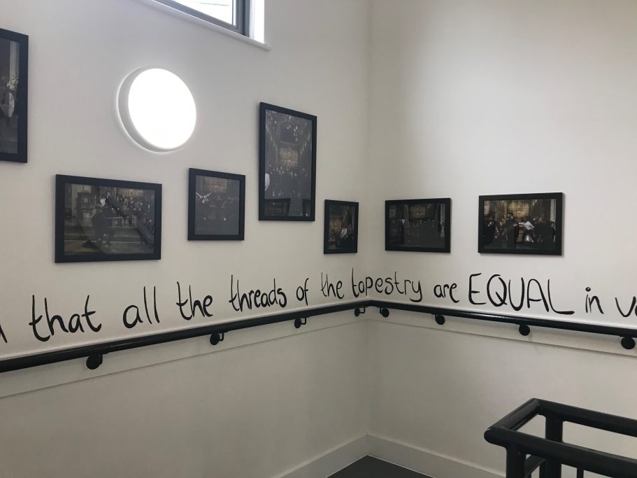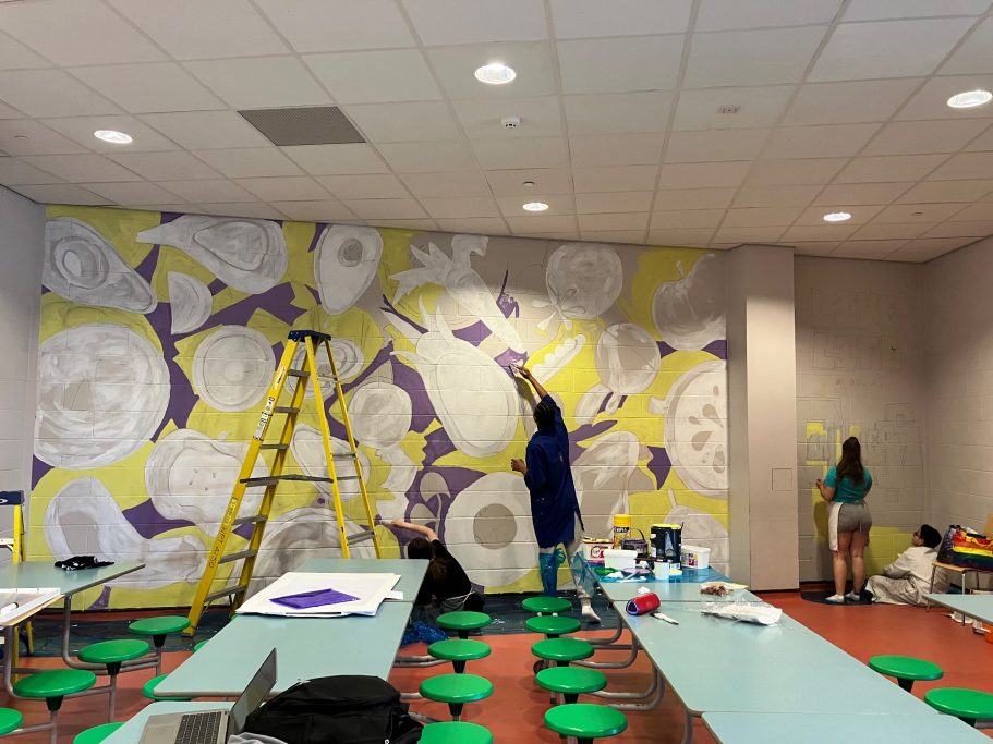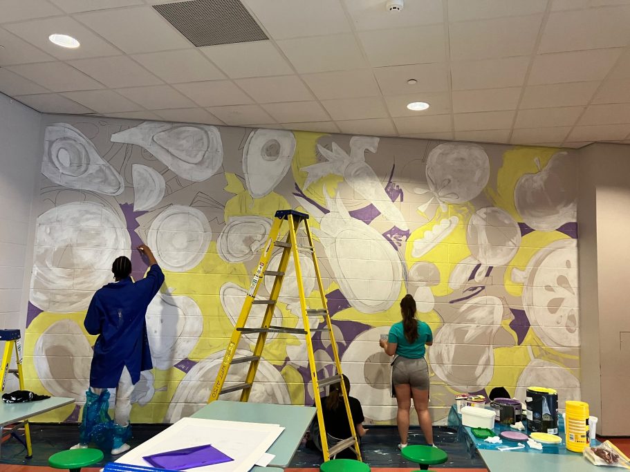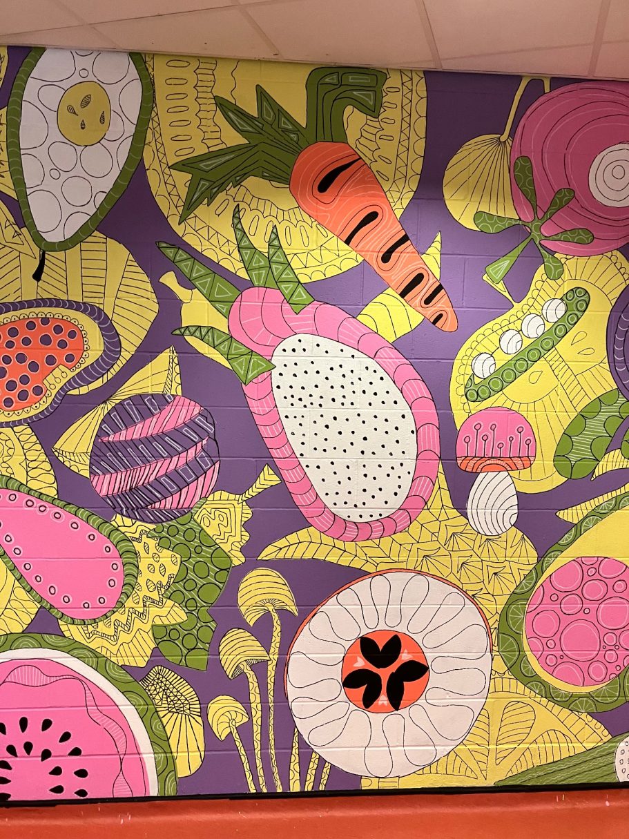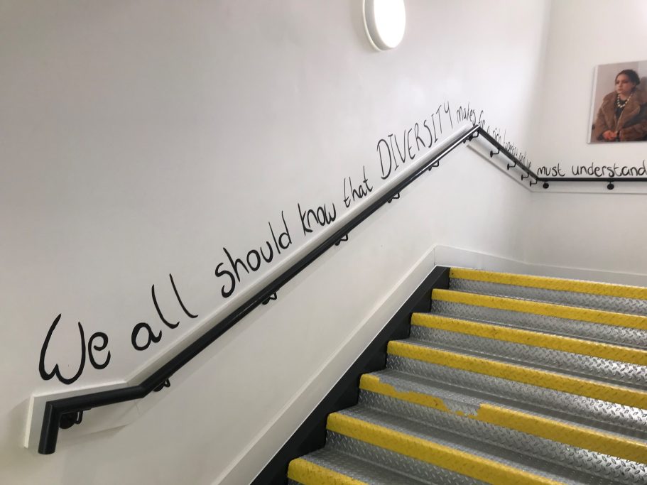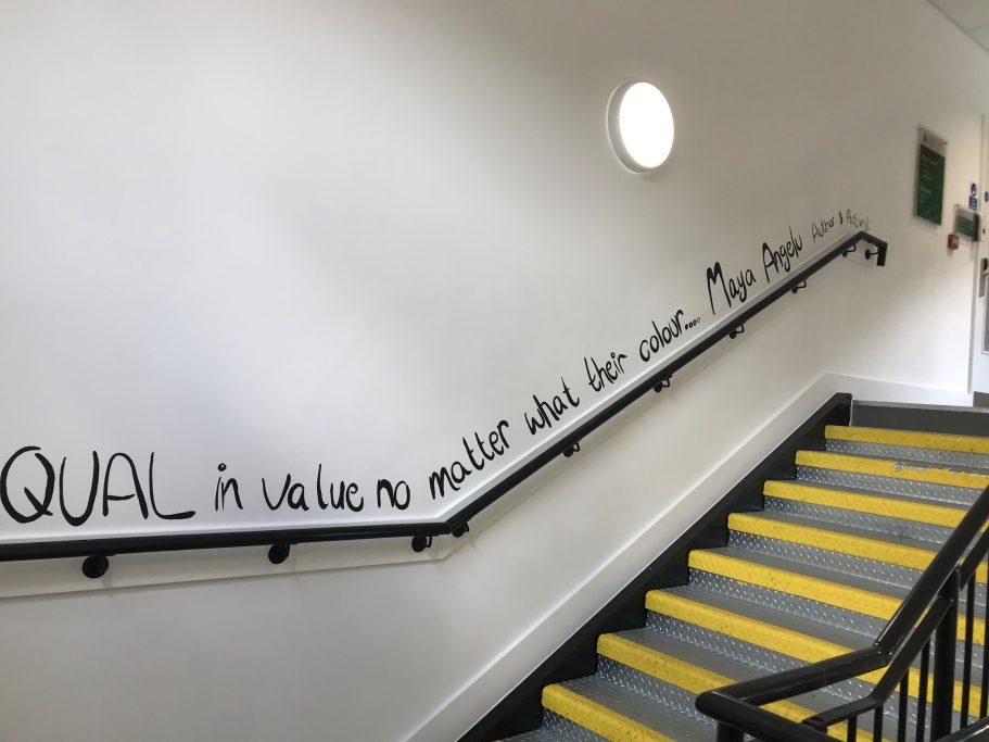 A wide selection of pupils from different year groups helped paint the mural, some Art GCSE Students, some Art Scholar students, some staff amd siome students that just really wanted to help out for wellbeing and enjoyment.