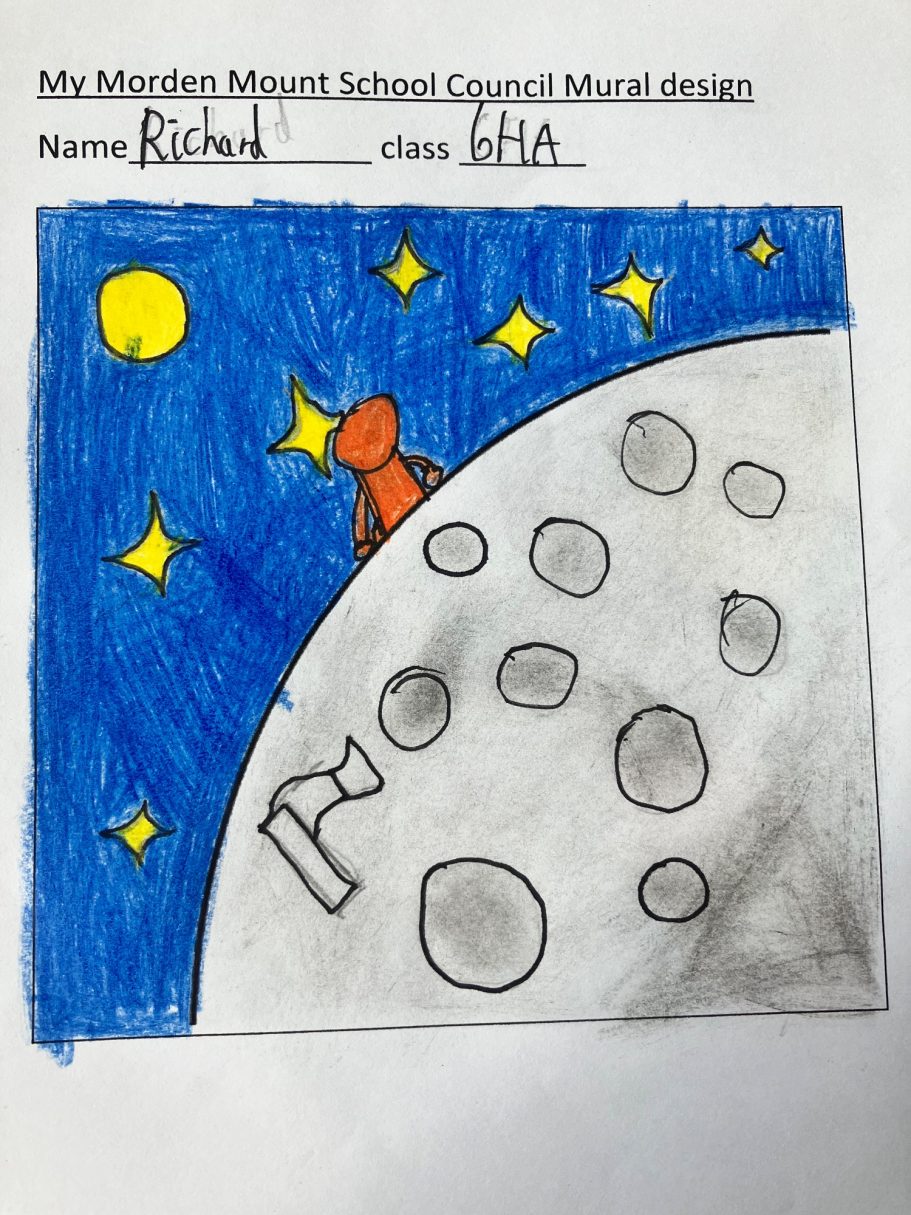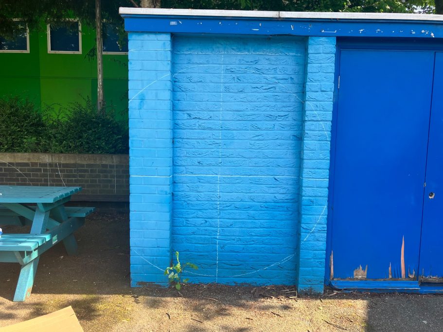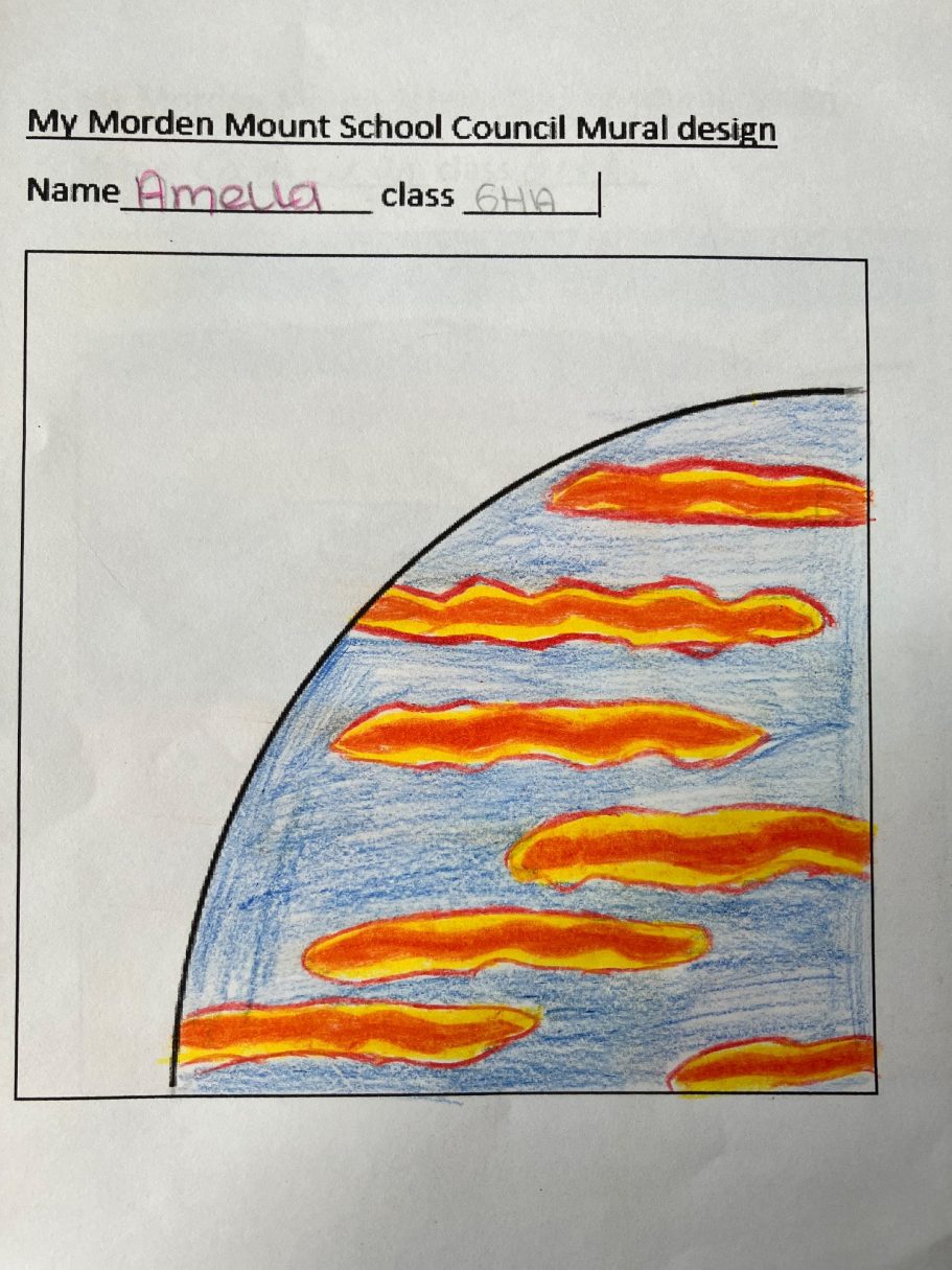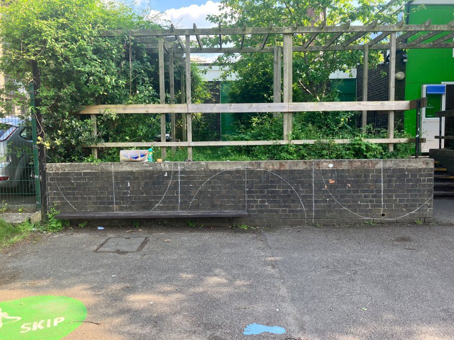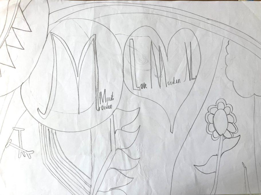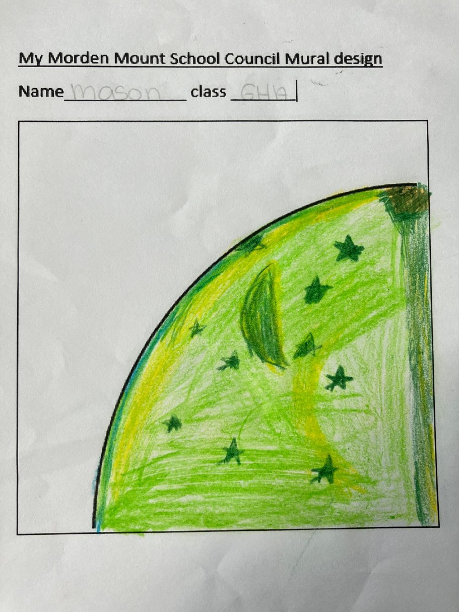 I was super excited to be working with James Wolfe Primary school on this new project. I worked with year 2 students drawing in Greenwich to come up with the initial ideas and then lead workshops back at school to design the final mural. I then painted the mural on the wall to transform the space.