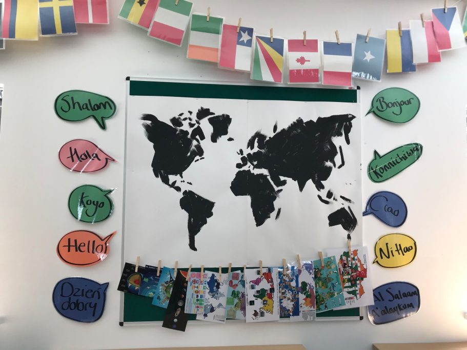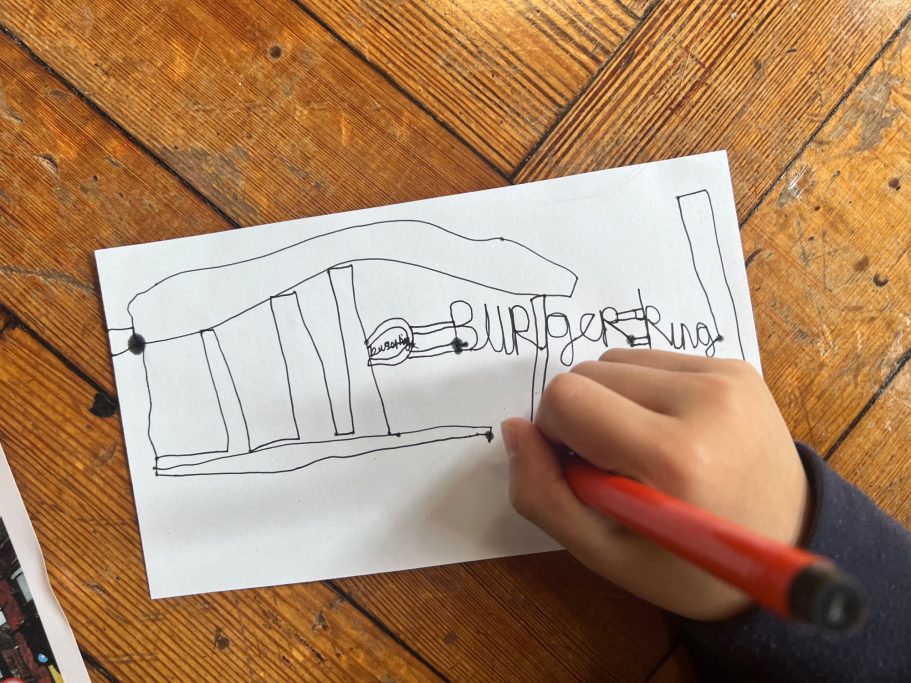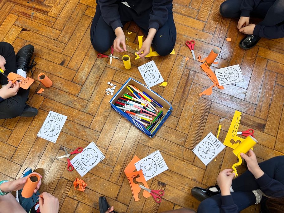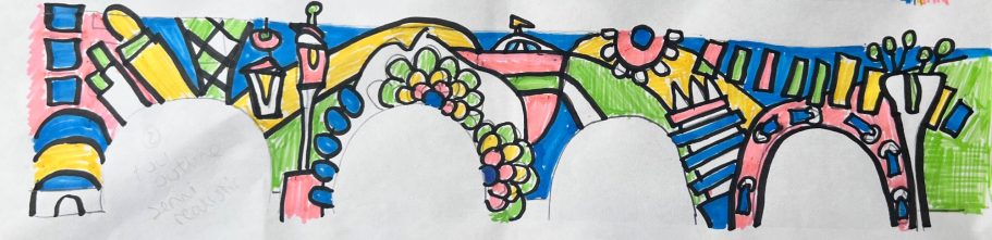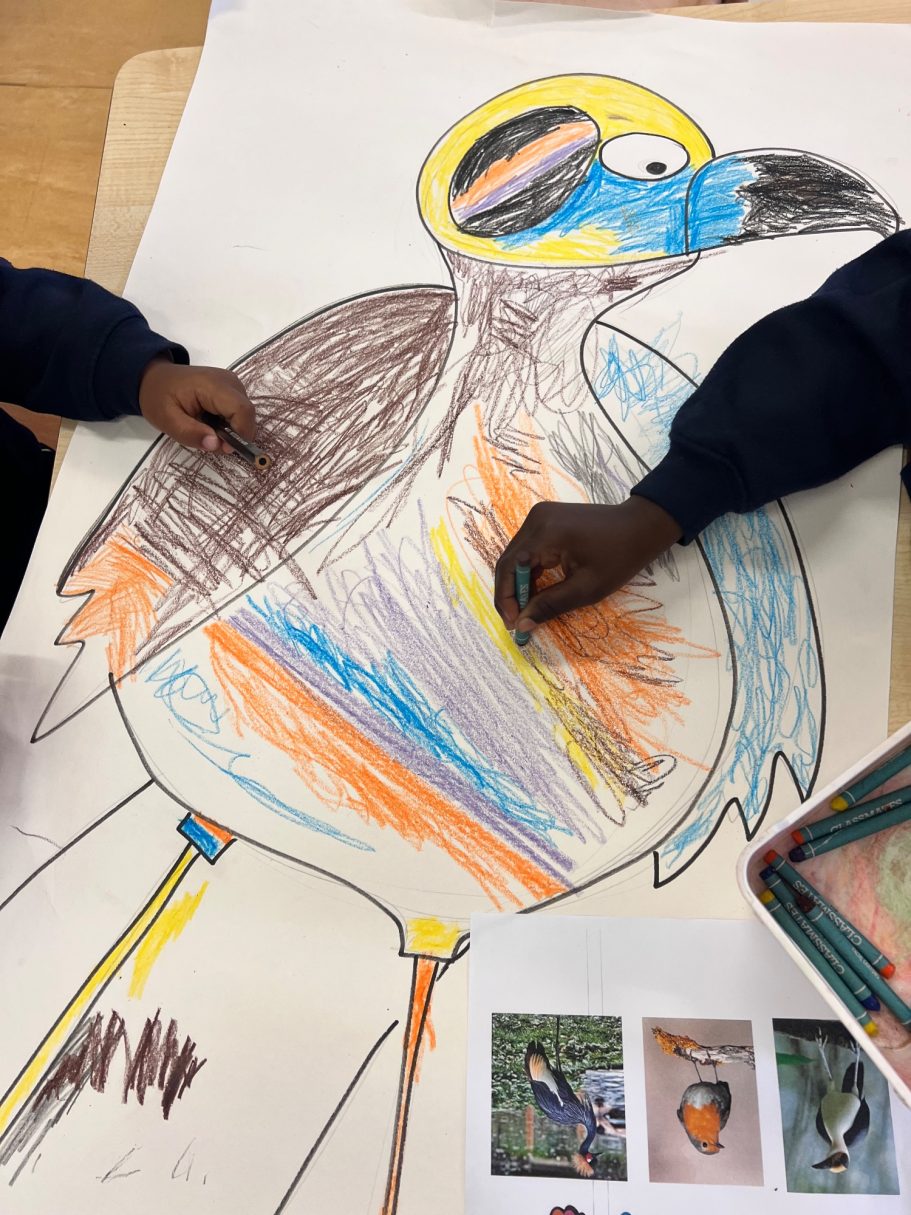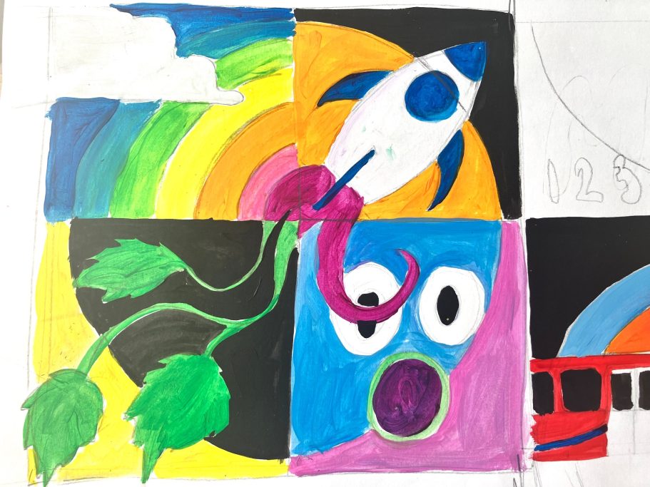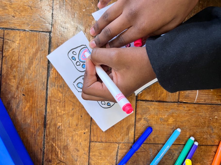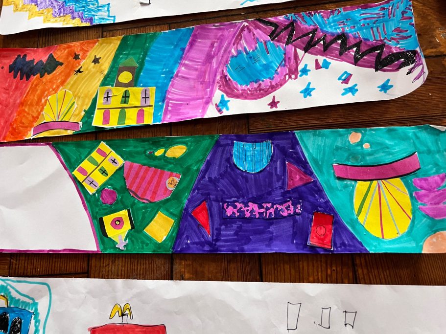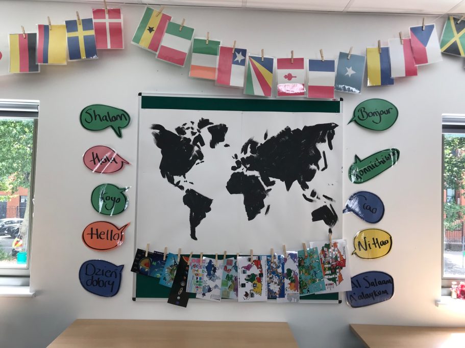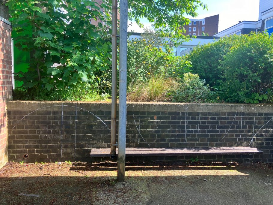 I was super excited to be working with James Wolfe Primary school on this new project. I worked with year 2 students drawing in Greenwich to come up with the initial ideas and then lead workshops back at school to design the final mural. I then painted the mural on the wall to transform the space.
