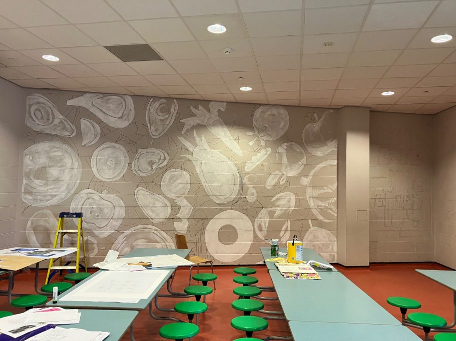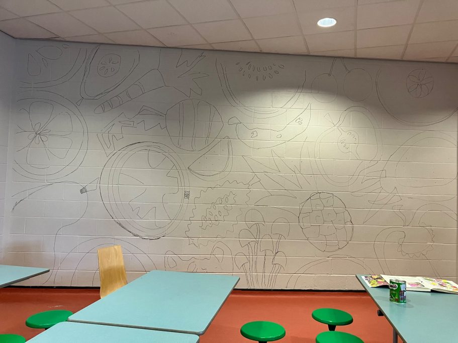 I am very excited about this project. Art Workshops by Hannah is working with Trinity Secondary school in Lewisham to paint a mural in their refectory.