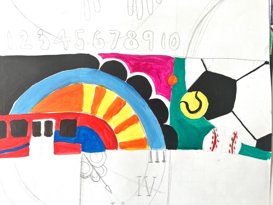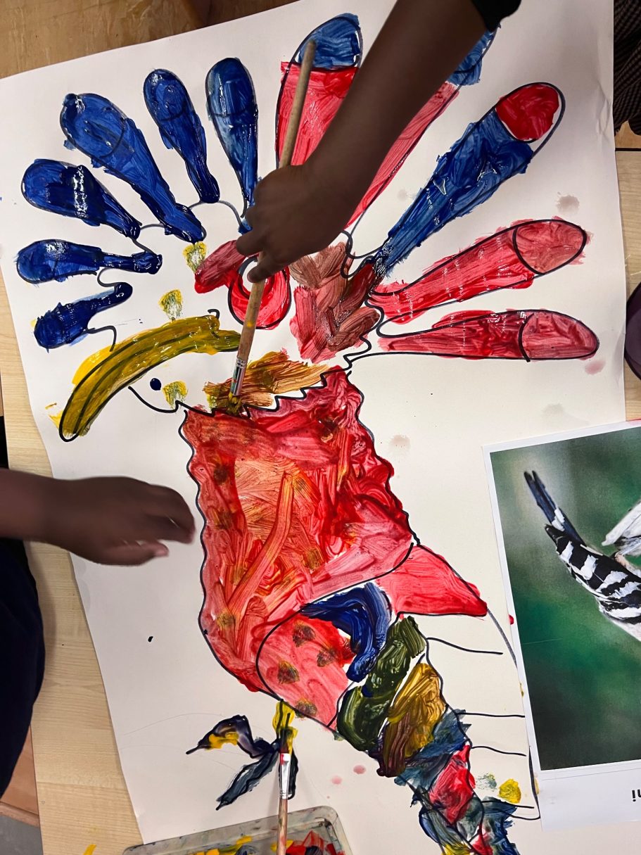 Because the mural is such a huge area it has taken lots of dedicated pupils hours of work, first priming the wall with white paint and then blocking in the ground colours. Its so lovely when you can start to see the design starting to take shape.