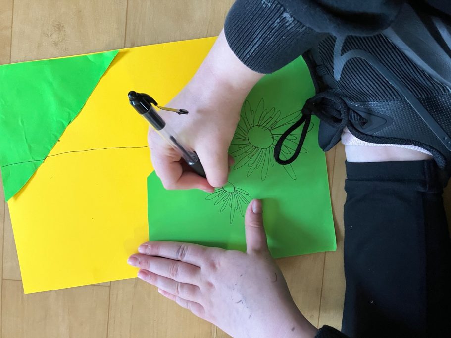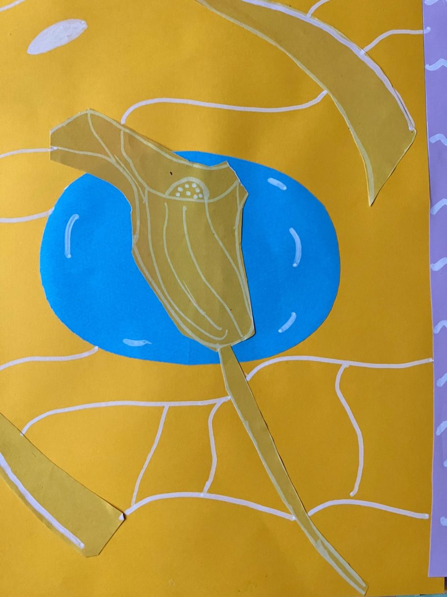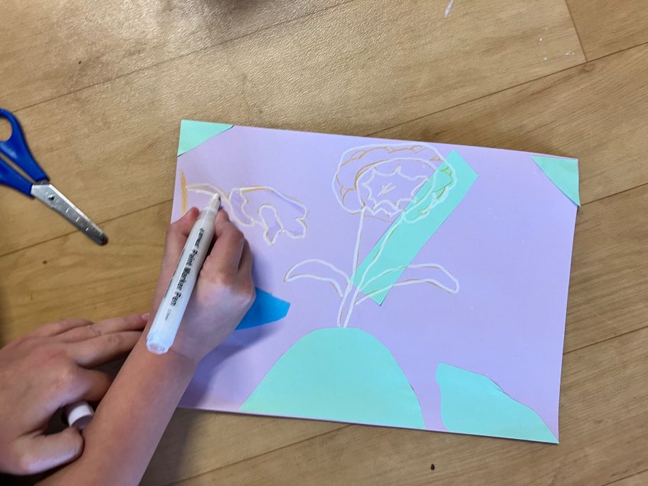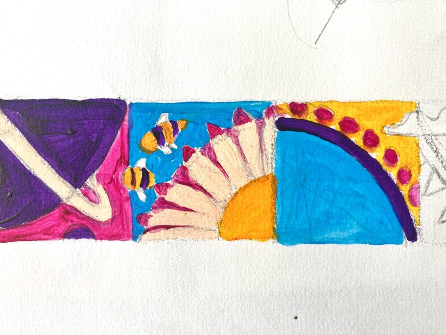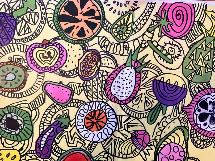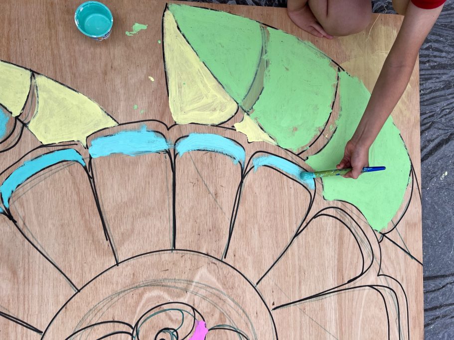 The Mural is taking native plants from the year 5's cultural heritage and using the colours from the school house system. A beautiful colour palatte of Yellow, Green, Blue and Purple.