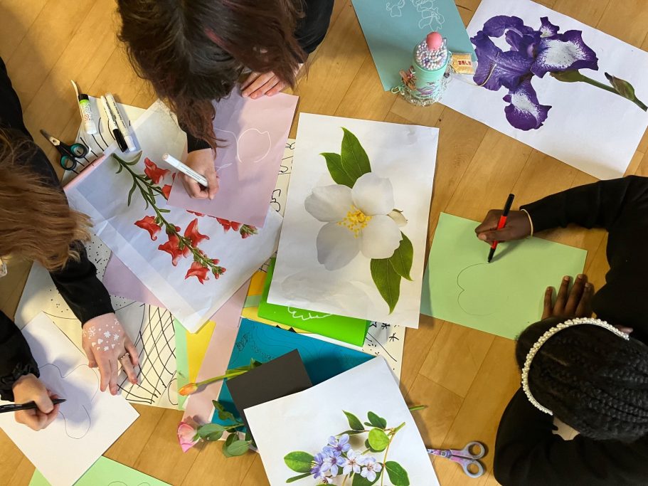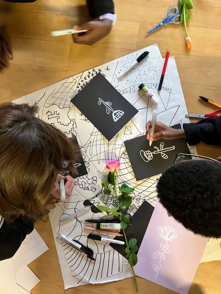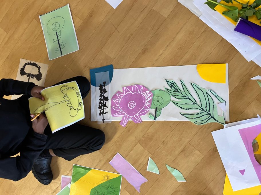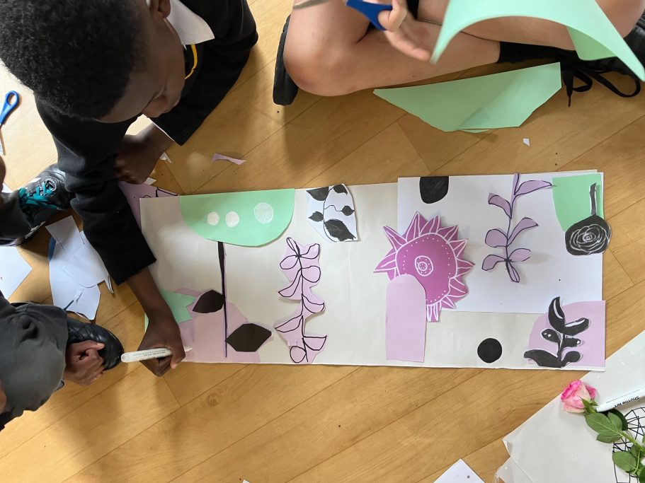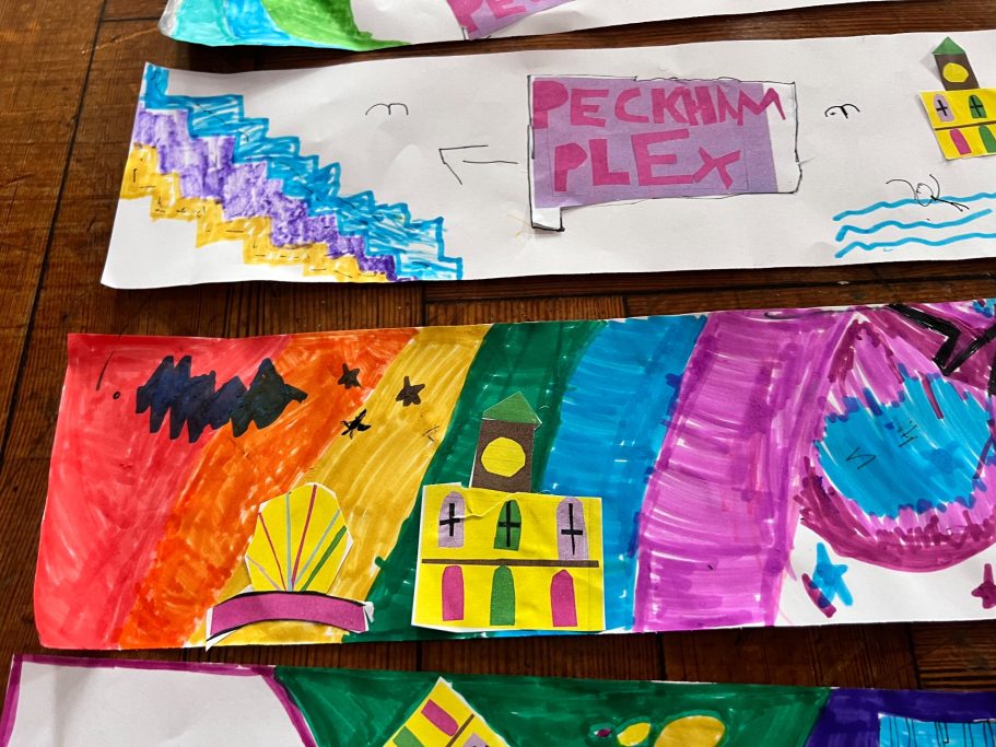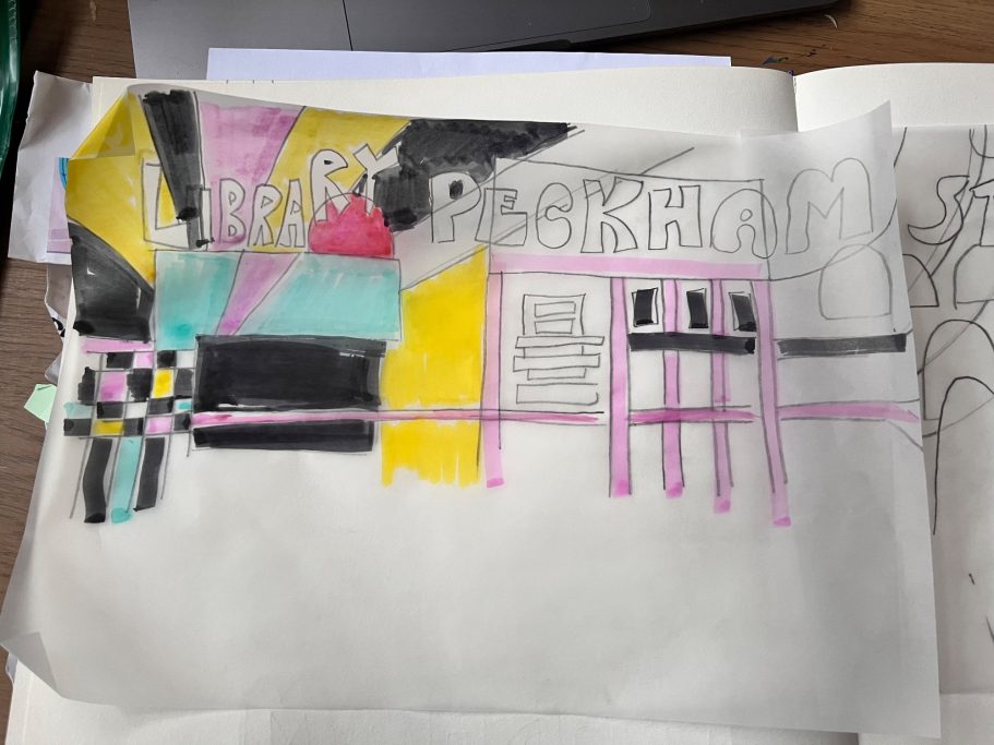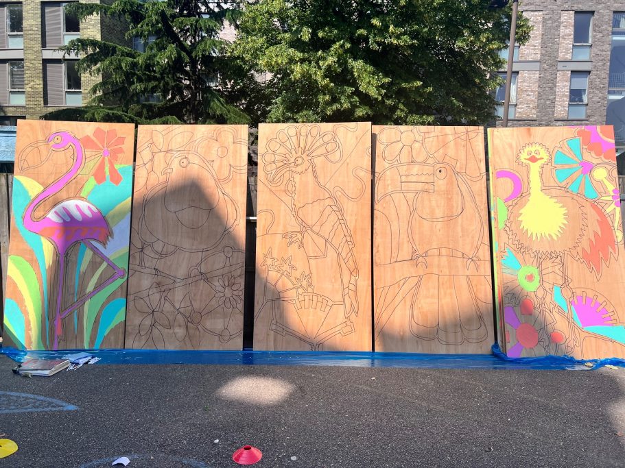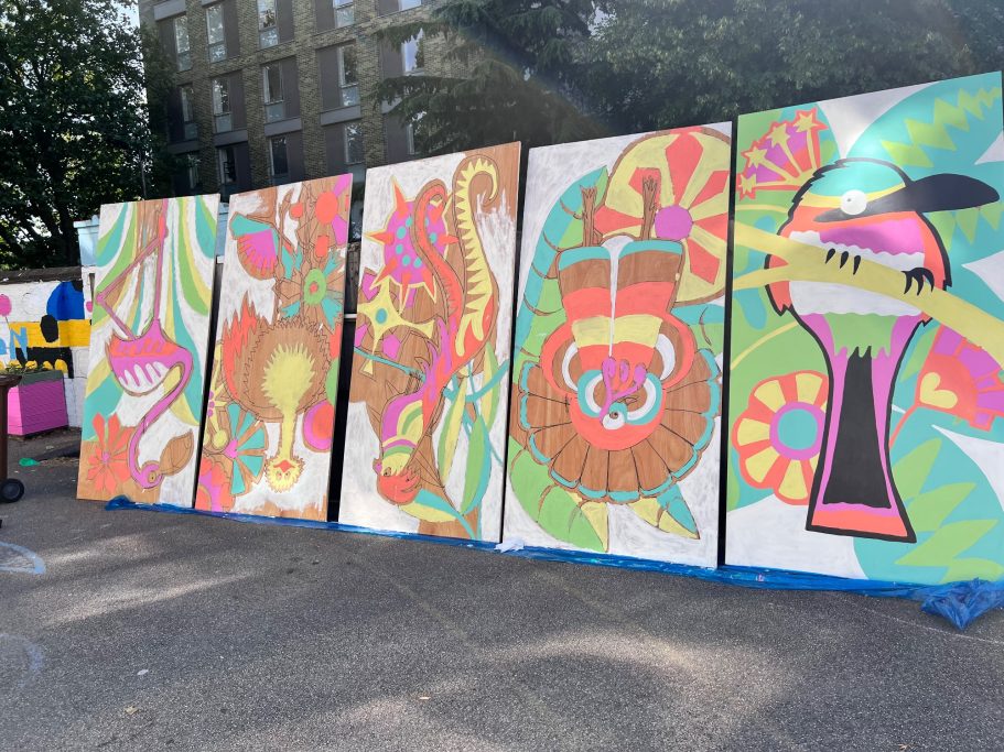 I was lucky enough to accompany the pupils on a trip to look a local lewisham murals before leading a full day Art Workshop where the pupils created the images that I would later turn into the Mural.