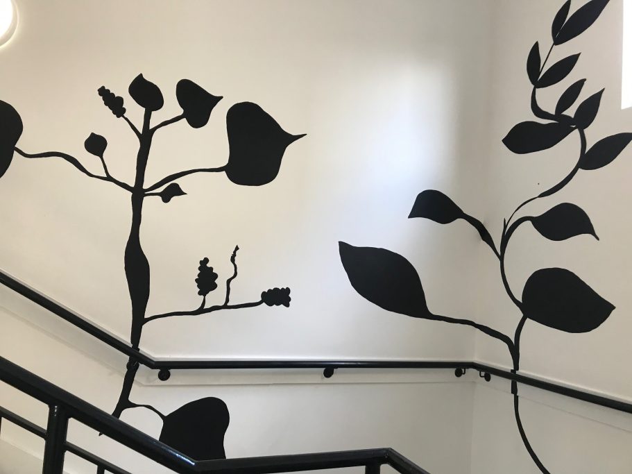 thew brief was to redesign the entrance hall area, a bright abstract collage of images painted in fun exciting colours inspired by the Brazilian Artist Beartiz Milhazes, see her work below.