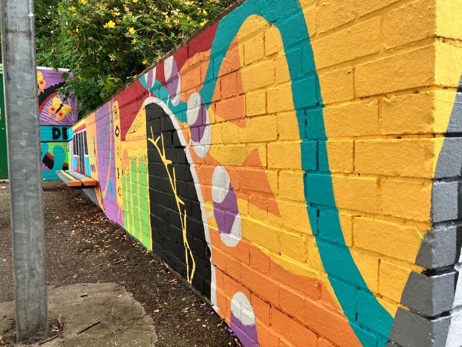 I have been lucky enough to have worked with 4 schools. Facilitating workshops make art to turn into Murals which I then painted with the help of the pupils who designed the original work