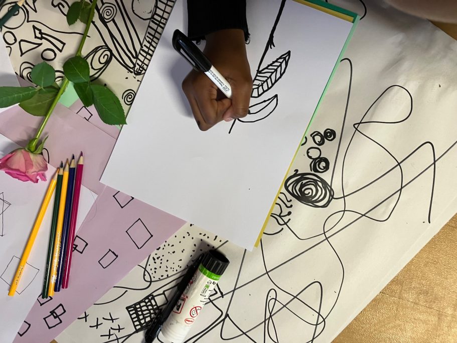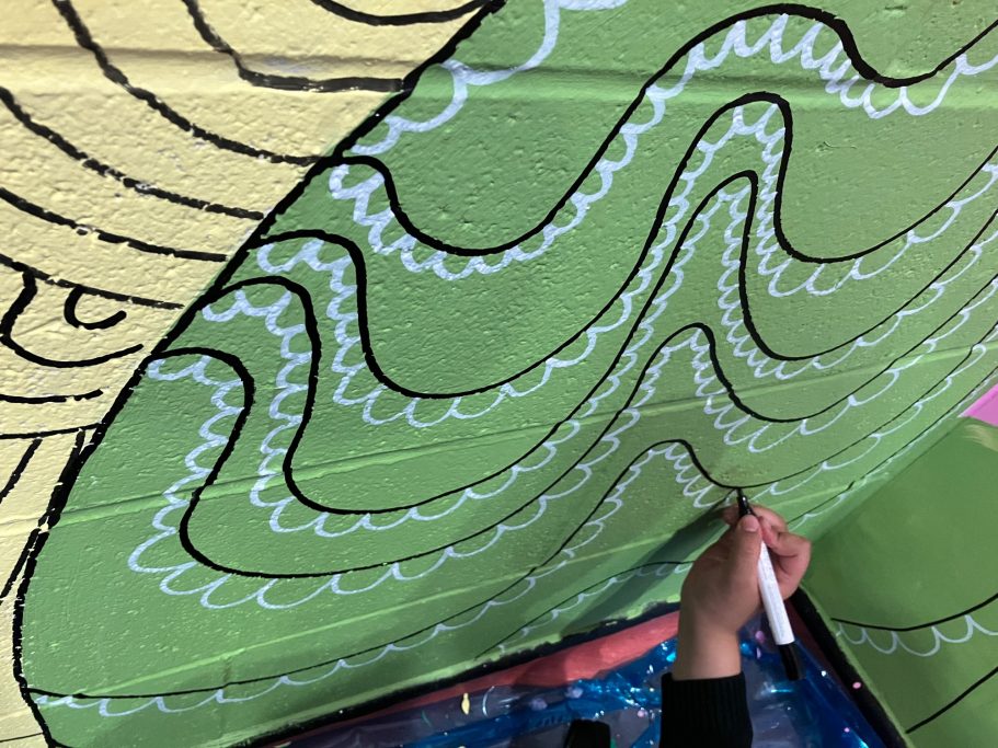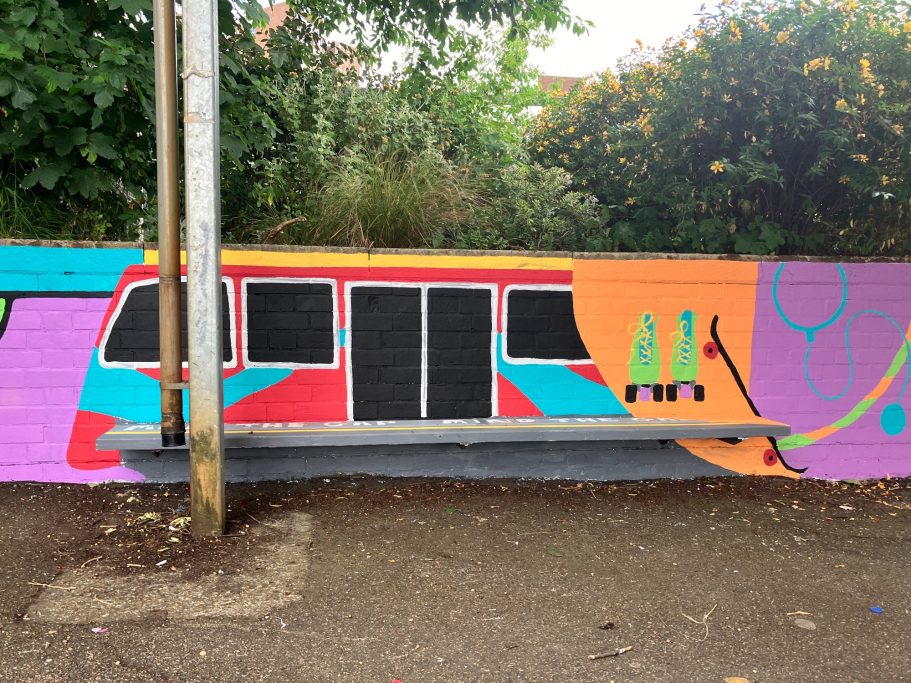 In collaboration with Black Thrive and Trinity Primary school in Hither Green I created a mural focusing on mental health and wellbeing. This was oraginsed by Amanda Harvey their amazing head teacher and Year 5 teachers I Apsey and J Gordon.